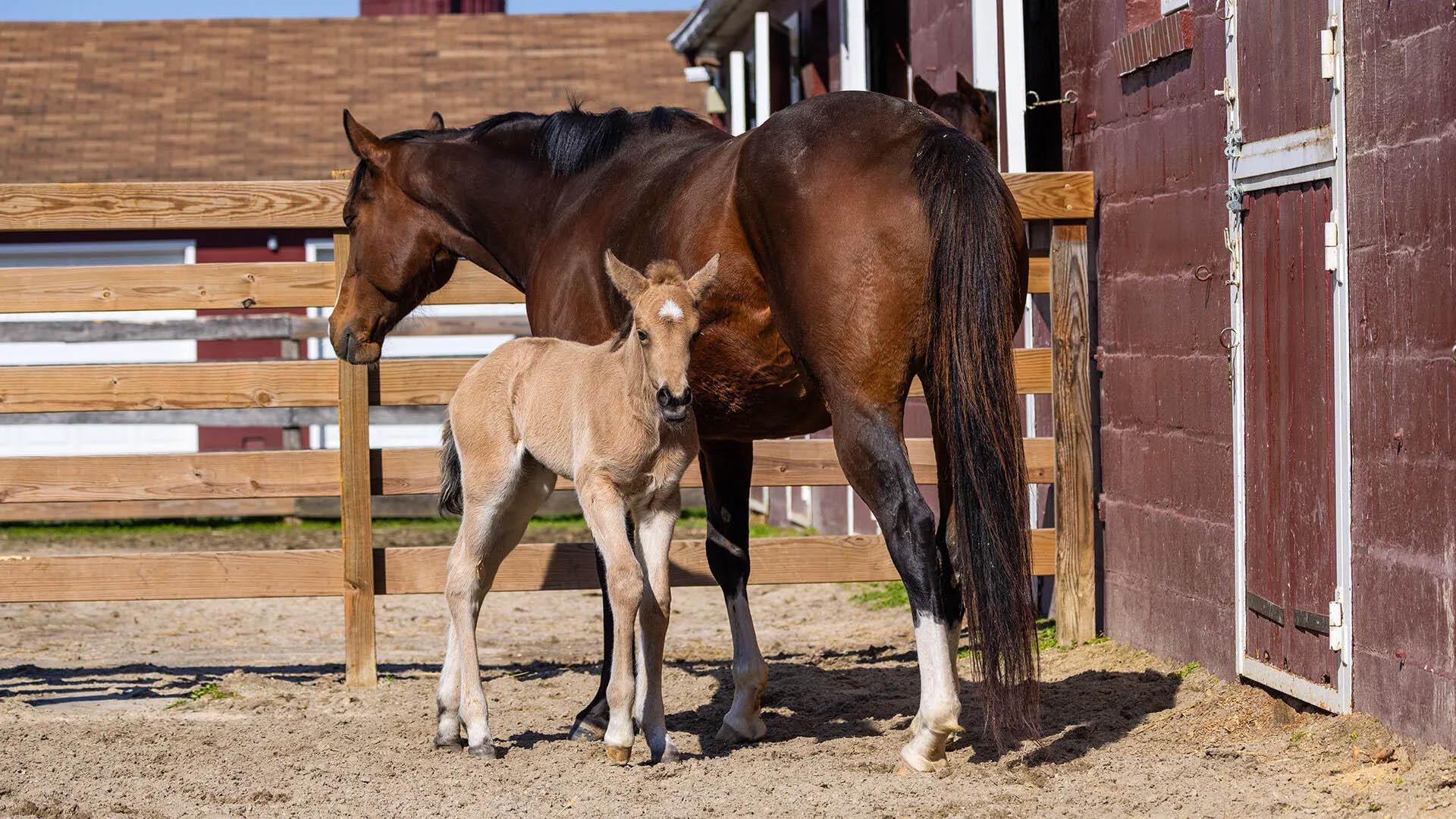 She was still more than a week out from her due date when Bailey suddenly started showing signs of agitation, pacing in her stall late last Saturday night. When Burk saw that on the security cameras, she drove to campus as a precaution, thinking there might still be hours to go—but around 1:50 a.m., she sent out an urgent text to the class, telling them a foal was on its way and seeing who could come help.